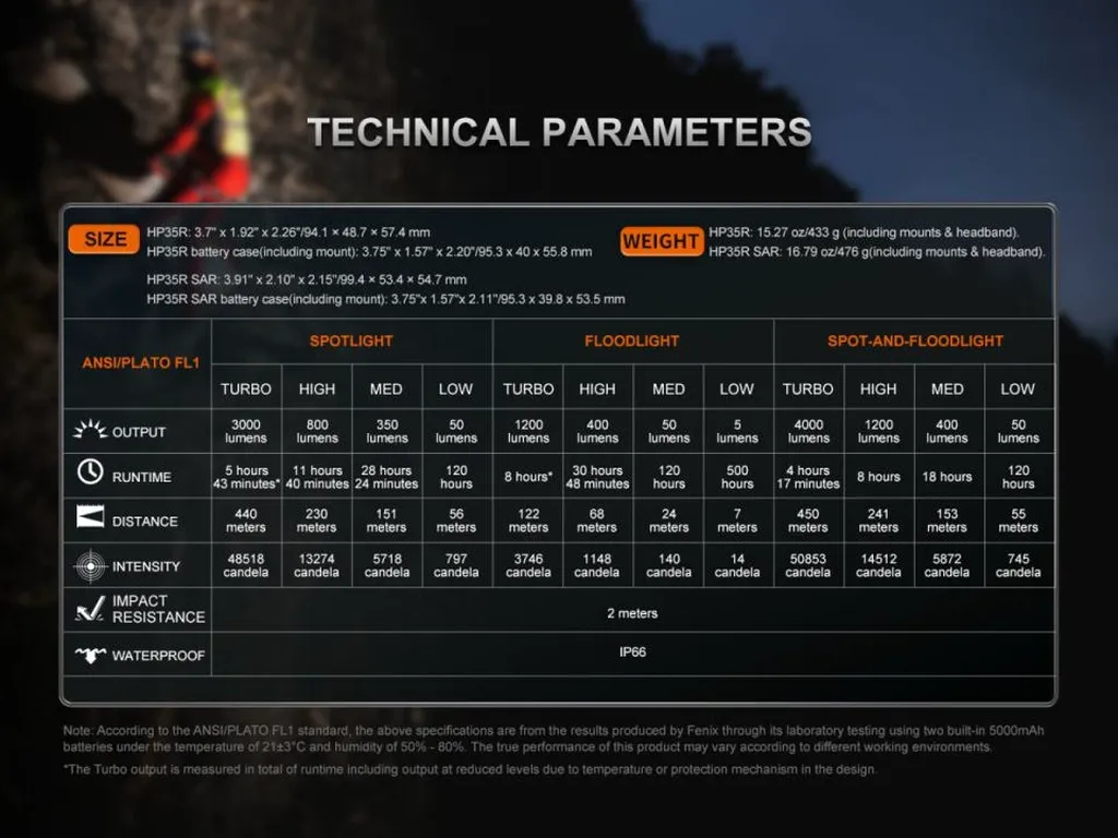 Illuminate your adventures with the Fenix HP35R headlamp, a powerful flashlight delivering up to 4000 lumens and a beam distance of 450 meters. Perfect for professionals in Canada, this rechargeable headlamp features dual 5000mAh batteries, offering an impressive runtime of up to 500 hours on low settings. Its separation-style design includes a versatile dual-LED system for spot, flood, and combined lighting modes. Ideal for search and rescue, law enforcement, and caving, the HP35R is built to withstand harsh environments with IP68 waterproof protection and 2-meter impact resistance. Experience the reliability and versatility of Fenix today.